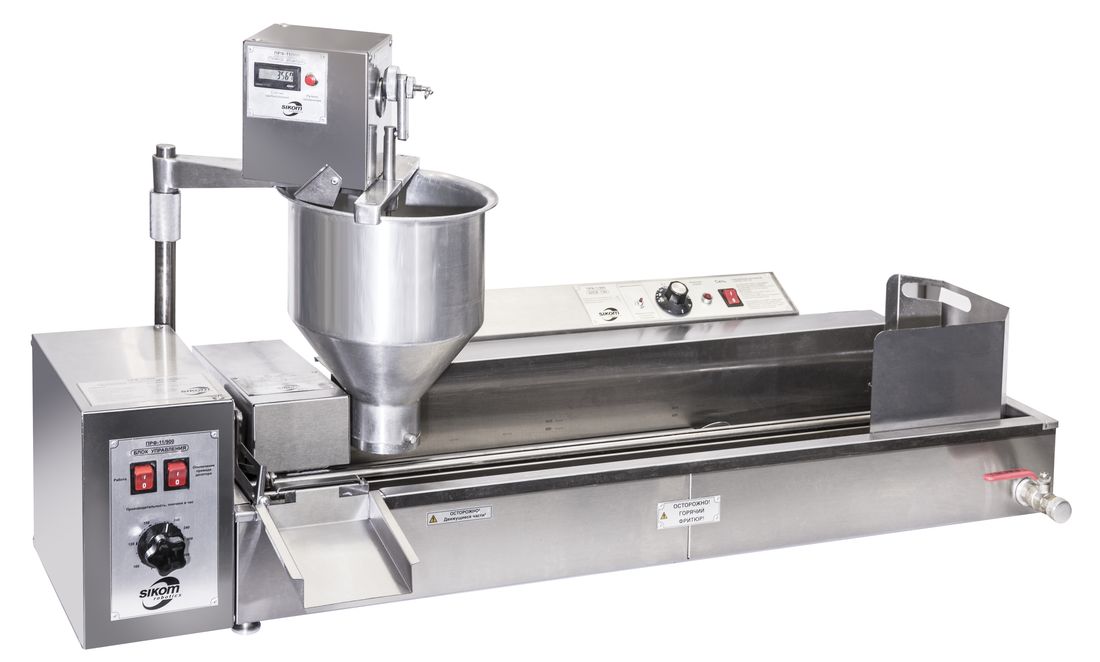 Профессиональный полуавтоматический аппарат пончиковый Sikom ПРФ-11/900 предназначен для формирования и приготовления пончиков традиционной формы в разогретом до определенной температуры фритюрном масле. Формует, обжаривает, переворачивает и выгружает пончики автоматически. Используется в торговых точках общепита. Портативное, надежное и недорогое решение.