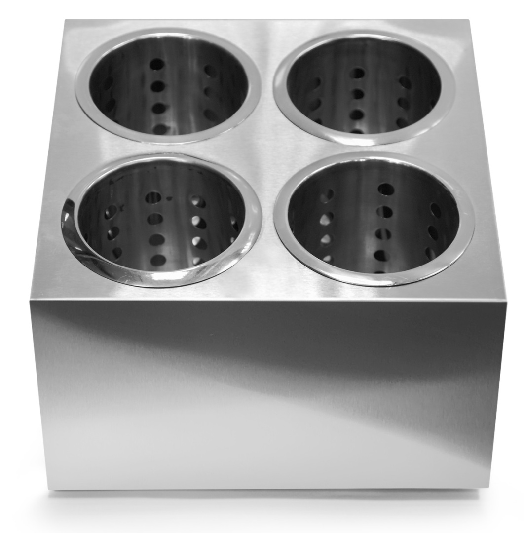 Контейнер для столовых приборов 4 ячейки [FL1702] кт751/1 предназначен для вставки стаканов для столовых приборов на предприятиях общественного питания и торговли. Изделие выполнено из нержавеющей стали.
