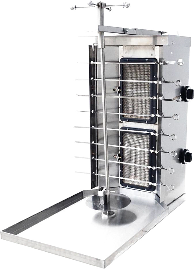 Газовый гриль для шаурмы Grill Master Ф2ШМГ предназначен для запекания специально подготовленного свиного, говяжьего, бараньего и куриного мяса, используемого для приготовления шаурмы, на предприятиях общественного питания и торговли. Модель оснащена 2 беспламенными горелками с системой газ-контроль и поддоном для мяса. Оборудование выполнено из нержавеющей стали.