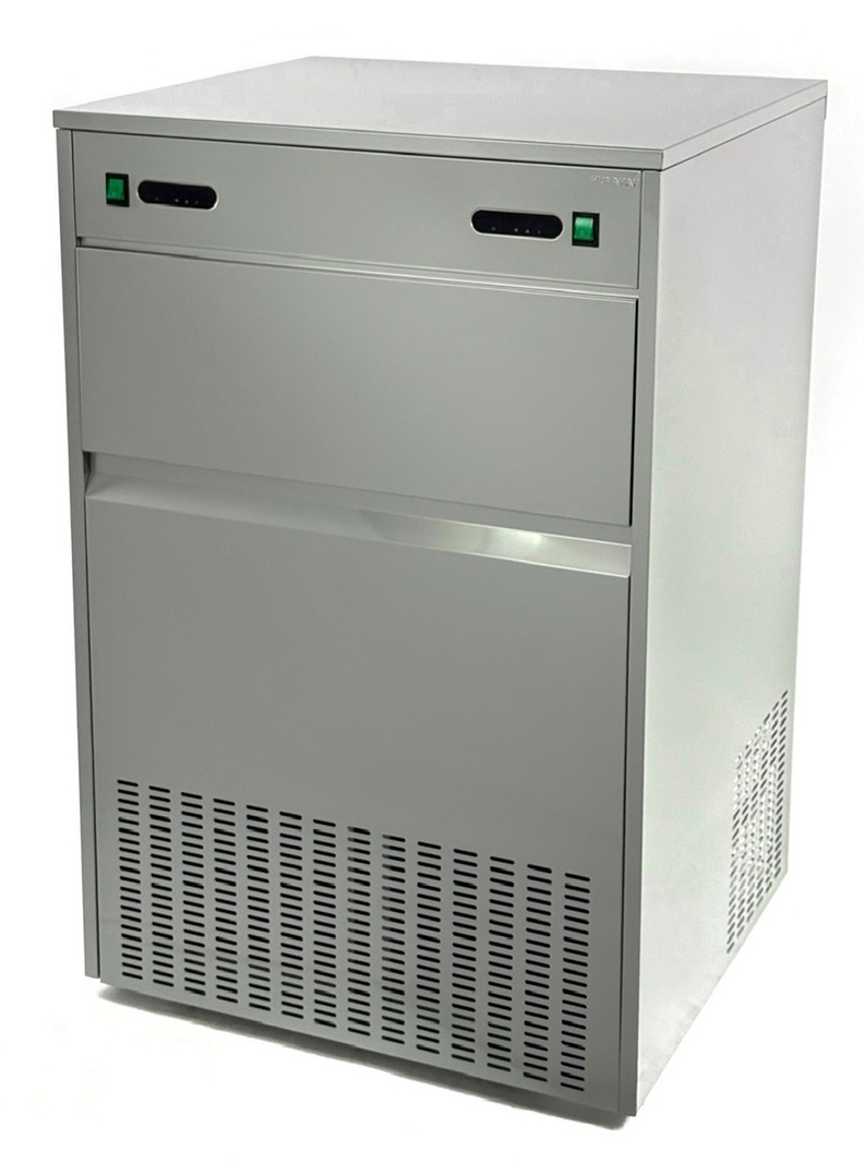 680x610x1050мм, 0,76кВт, 220В, 70кг, производительность 120 кг/сутки, бункер 50кг, воздушное охлаждение, с подключением к воде, пальчиковый лёд