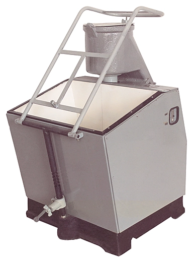Оснащен встроенным магнитным уловителем металлических частиц и устройством для подъема и опрокидывания мешков