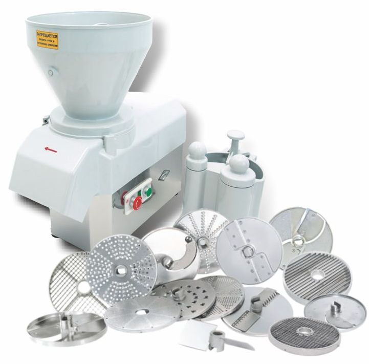 600х340х650мм, 11 дисков, 3 решетки, производительность до 600кг/350кг, с полный набор рабочих дисков для резки: диск шинковочный - соломка 4х3мм, диск тонкого измельчесния - драники, нож комбинированный - брусочки 5х10мм, нож для наресзки соломки - по-корейски 2х2мм, диск терочный 1,3х3,5 мм, нож дисковый - ломтики 2мм, решетка ножевая - кубик 10х10х10 мм, нож дисковый - кубик 10х10х10х мм, решетка ножевая - картофель фри 10х10мм, нож для нарезки - картофель фри 10х10мм, приспособлений для протирки: диск протирочный 1,5мм,диск протирочный 4 мм, 380В, 1 кВт, вес нетто 32кг, настольное исполнение, решетка ножевая 8х8 мм МПР-350М.51.00.00, нож дисковый 8 мм МПР-350М.52.00.00