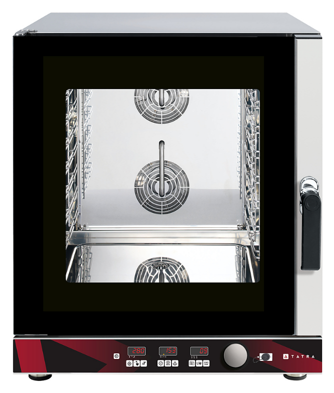 Пароконвектомат TATRA TPI 07 DC.V предназначен для использования на предприятиях общественного питания для приготовления различных блюд с применением режимов сочетания конвекции и пара. Фактически пароконвектомат может заменить собой несколько типов теплового оборудования, таких как конвекционная печь, жарочный шкаф, пароварка, плита и сковорода.