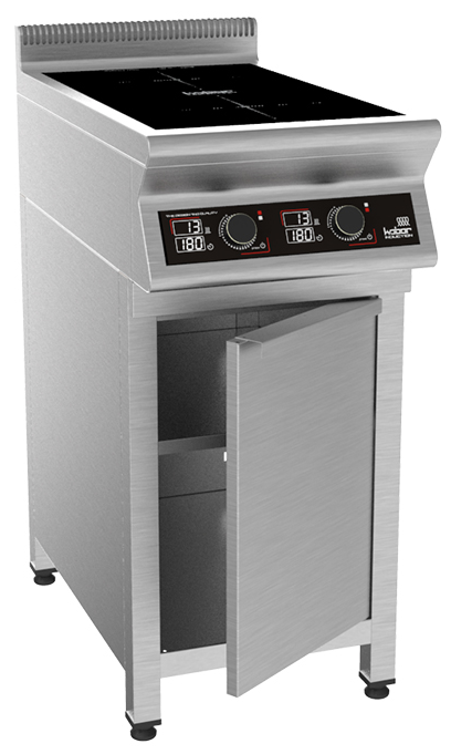 400х700х870 Плита индукционная на закрытой подставке, 2 конфорки мощностью 2х3,5кВт, электронная панель управления с цифровой индикацией, 13 уровней нагрева, таймер до 180мин., съемный жировой фильтр, корпус из н.с. AISI 304, регулируемые по высоте ножки, рабочая поверхность - стеклокерамика 6мм, 7 кВт, 220В.