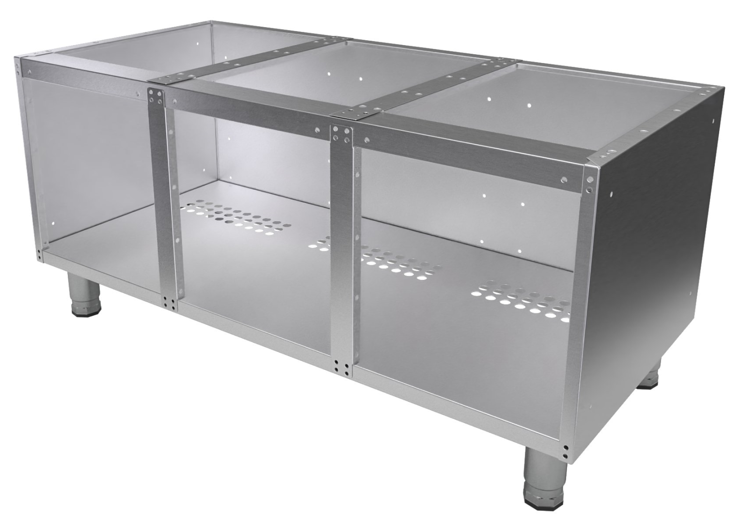 • Изготовленная из высококачественной нержавеющей стали AISI 304, она обеспечивает устойчивую и долговечную основу для различных видов кухонного теплового оборудования, таких как жарочные поверхности, фритюрницы или пароконвектоматы