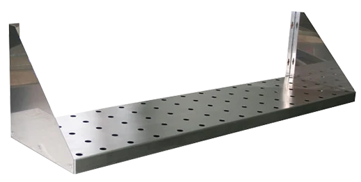 900х400х145мм, Полка перфорированная из нержавеющей стали марки AISI 304 толщиной 0,8мм, разборная, болтовое соединение. Навесные полки крепятся к стене при помощи двух боковых кронштейнов. Кронштейн крепления может быть, как сверху, так и снизу полки. Полки рекомендуется крепить к влагоустойчивым поверхностям. Возможно размещение полок одна над другой. Полка поставляется в разобранном виде.