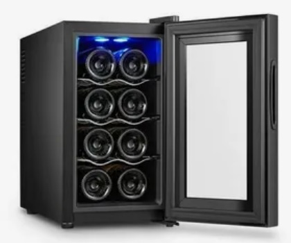 252x500x453, 220В, 0,065кВт, Class A+, 11 кг, 8 бутылок, термоэлектрическое охлаждение, температурный режим 3-18С, 3 полки, настраиваемый термостат, дверь со стеклом