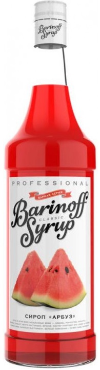 Сироп Barinoff "Арбуз" имеет красновато-алый оттенок, тягучую густую консистенцию и свежий и запоминающийся вкусоаромат с яркими арбузными оттенками, передающими весь многообразный букет всеми любимого природного десерта. Применяется в различных холодных коктейлях, в качестве пропитки выпечки.