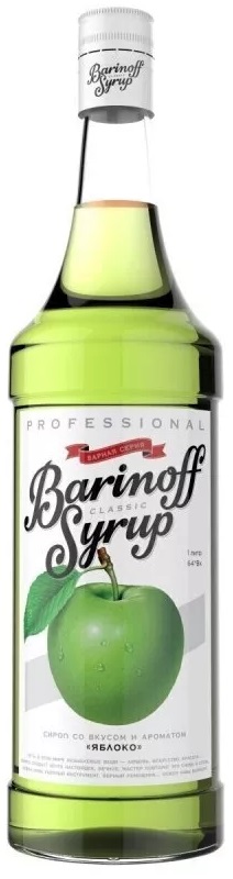 Сироп Barinoff "Яблоко" обладает темно-зеленым цветом и тягучей плотной консистенцией, а в его многогранном и ярком букете присутствуют кисло-сладкие яблочные тона. Яблочный сироп можно добавлять в блюда и напитки, а также применять для украшения десертов и пропитывания выпечки.