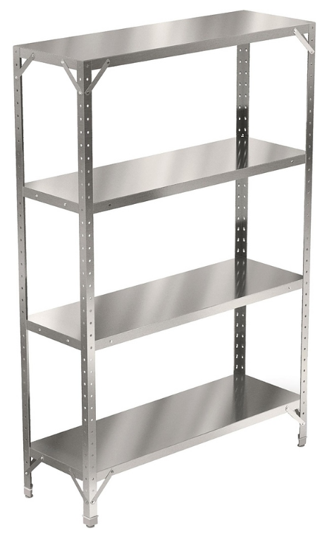 1200х400х2000мм, Стеллаж, 4 сплошные полки из нержавеющей стали AISI 430 толщиной 0,5 мм. Расстояние между полками регулируемое с шагом 50мм. Каркас из уголка нержавеющей стали AISI 430 толщиной 1,5 мм. Распределенная статическая нагрузка на полку - 50 кг. Наличие подгибов по периметру полки исключает опасность травм.