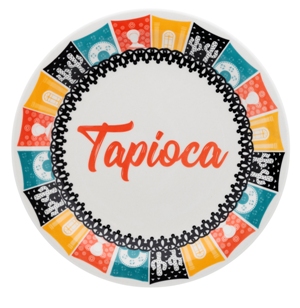 Мелкая тарелка Oxford BAZAR TAPIOCA 75406 J084-6811 используется на предприятиях общественного питания и торговли, а также в домашних условиях для подачи национального бразильского блюда тапиоки. Коллекция разработана для подачи декорирована яркими паттернами с элементами культуры и быта провинциальных регионов Бразилии. Изделие выполнено из высококачественной керамики с глянцевой глазурованной поверхностью к комбинации оранжевого, желтого, бирюзового и черного тонов.