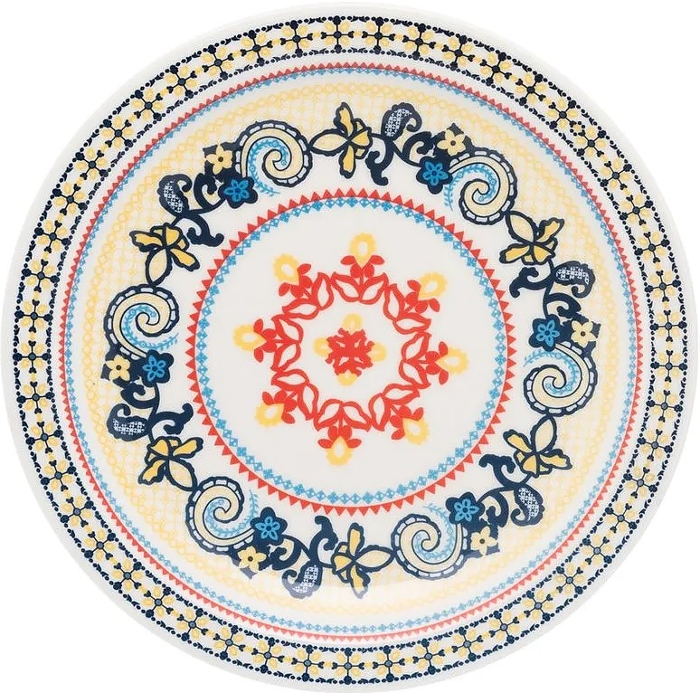 Мелкая тарелка Oxford FLOREAL Shape LA POLLERA 75284 J084-6810 используется на предприятиях общественного питания и торговли, а также в домашних условиях для подачи вторых блюд. ККоллекция вдохновлена эстетикой испанских колониальных платьев и декорирована узорными орнаментами в яркой контрастной цветовой гамме. Изделие выполнено из высококачественной керамики с глянцевой глазурованной поверхностью в комбинации синего, красного, желтого и черного тонов.