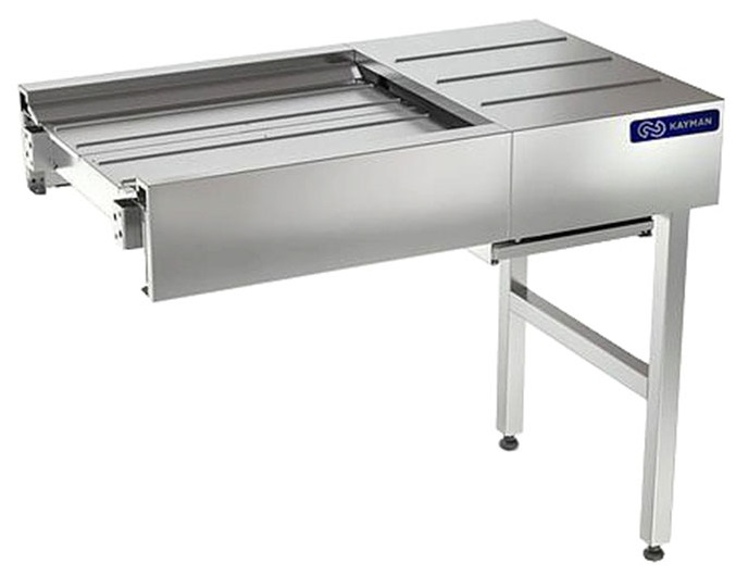 Транспортер модуль натяжной KAYMAN ТМ-Н-01 А предназначен для транспортировки грязной посуды из обеденного зала в посудомоечное отделение или для перемещения посуды внутри отделения. Натяжной модуль представляет собой часть транспортера, предназначенную для натяжения ленты.