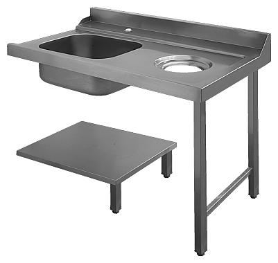 С моечной ванной, отверстием для отходов и бортиком для защиты от брызг
