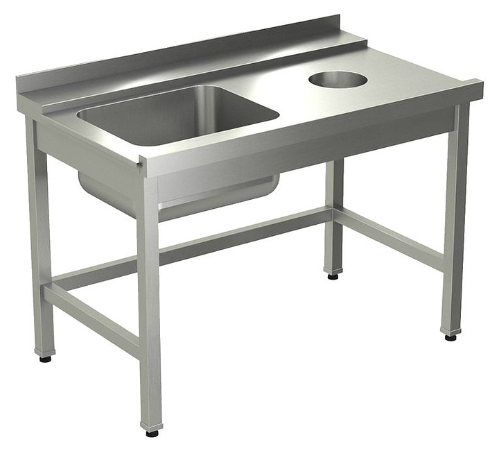Стол оснащен встроенной моечной ванной (400х500х250 мм) для предварительного ополаскивания посуды или замачивания столовых приборов.