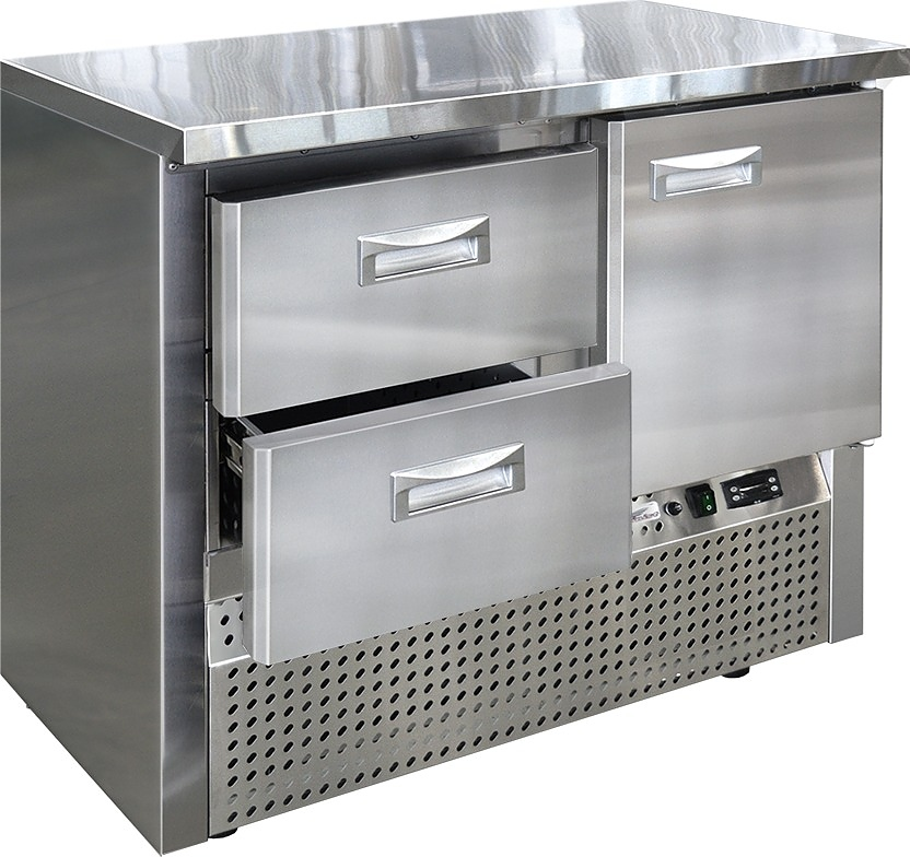 Стол холодильный Finist СХСн-600-1/2 используется на предприятиях общественного питания и торговли, предназначен для хранения предварительно охлажденных мясных и рыбных полуфабрикатов, заготовок для салатов, молочной продукции, охлажденных напитков и других пищевых продуктов.