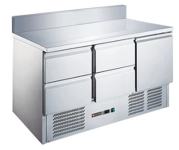 1365x700x976 мм, 230В, 0,24 кВт, 368 л, +2…+8 С, 1 дверь, 2 + 2 ящика, полка GN1/1, одна полка в комплекте, столешница из нержавеющей стали, с бортом, нижнее расположение холодильного агрегата, вентилируемое охлаждение