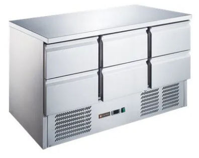 1365x700x876 мм, 230В, 0,24 кВт, 368 л, +2…+8 С, 2+2+2 ящика, столешница из нержавеющей стали, без борта, нижнее расположение холодильного агрегата, вентилируемое охлаждение