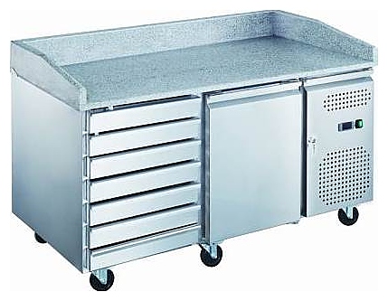 1515x800x1000мм, 220В, 390л, температурный режим -2/+8, динамическое охлаждение, каменная столешница с высокими бортами, 1 дверь и 7 выдвижных ящиков, боковое расположение холодильного агрегата