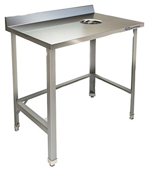 Стол для сбора отходов KAYMAN СП-455/0906 Л используется на предприятиях общественного питания и торговли. Каркас выполнен из уголка оцинкованной стали толщиной 1,5 мм, столешница - из нержавеющей стали AISI 430.