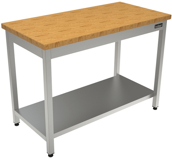 1500х700х870 Стол-кондитерский (столешница - бук. толщ. 40 мм, каркас нерж. труба 40х40, полка, разборный)