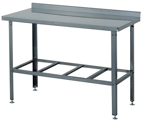 Производственный стол ATESY СП-3/950/800 предназначен для разделки и обработки продуктов, установки и хранения кухонных приборов, инвентаря и сухих продуктов на предприятиях пищевой промышленности, общественного питания и торговли. Модель оснащена регулируемыми по высоте ножками. Столешница выполнена из нержавеющей стали AISI 430 толщиной 0,8 мм, усилена подложкой из ламинированной ДСП толщиной 16 мм, стойки каркаса - из трубы диаметром 40 мм из нержавеющей стали AISI 430, полка - из нержавеющей стали, ножки - из пластика.