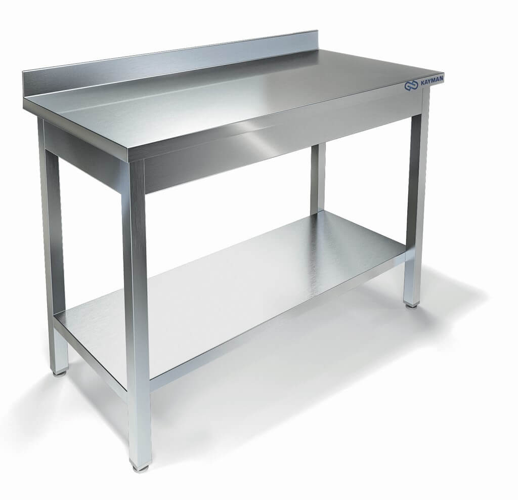 Производственный стол KAYMAN СП-222/0707 используется на предприятиях общественного питания и торговли для раскатки теста и обработки ингредиентов для приготовления блюд, а также как дополнительное место для установки и хранения кухонных приборов, инвентаря и сухих продуктов. Модель оснащена полкой и бортиком. Каркас выполнен из нержавеющей трубы AISI 430 40х40 мм, столешница - из нержавеющей стали AISI 430 толщиной 1,2 мм, усилена листом ЛДСП.