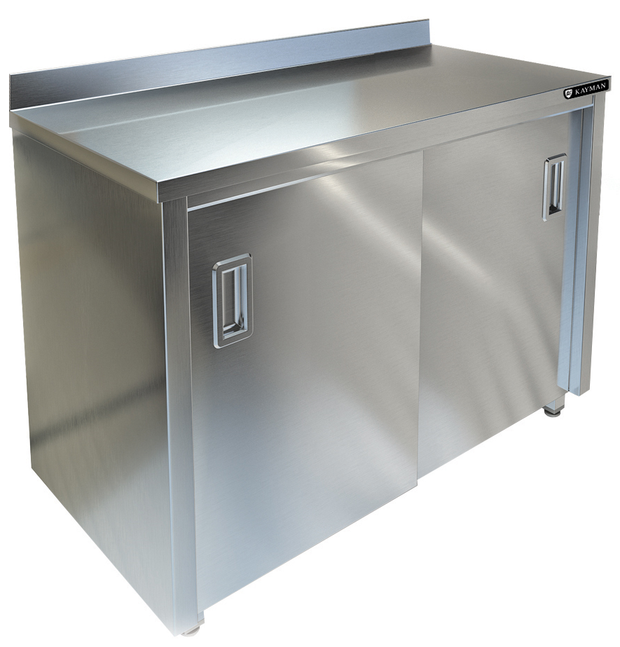 Стол-купе пристенный KAYMAN СТП-222/1207 может использоваться как обычный разделочный стол и одновременно для хранения посуды, кухонного инвентаря, сухих видов продуктов и столовых приборов.