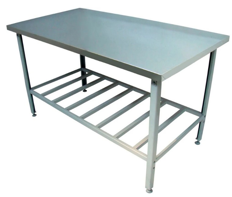 Использованный материал рабочей поверхности: нержавеющая сталь, что делает применение такого стола долговечным