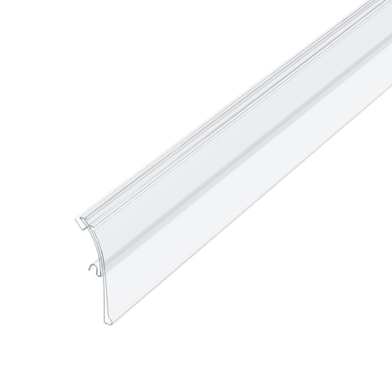 Ценникодержатель полочный HSAC пластиковый 988x39 мм прозрачный (50 штук в упаковке). Устанавливается на полки с С-образным профилем на торце: Kifato, La Fortezza, Alser, Нордика и др. Гибкое крепление обеспечивает откидывание ценника вверх.