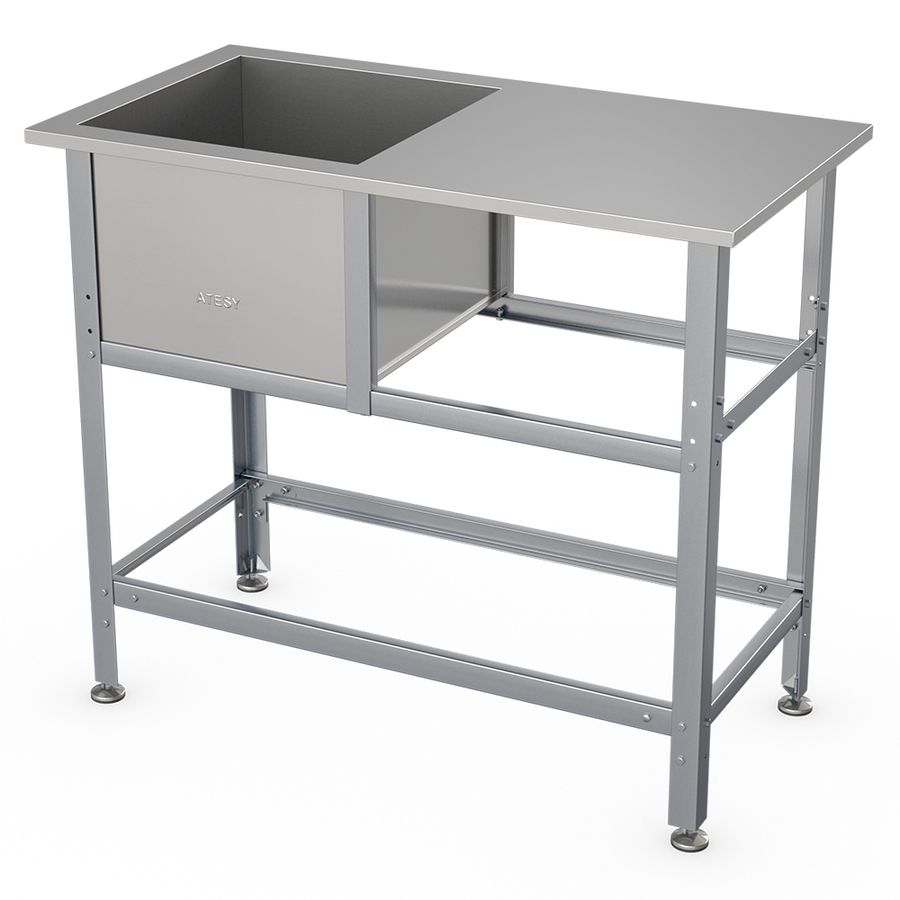 Моечная ванна ATESY ВСМС-С-1.430-1010.530-02 серии Стандарт используется на предприятиях общественного питания и торговли для мойки продуктов, посуды и прочего кухонного инвентаря. Сварная ванна выполнена из нержавеющей стали AISI 304 толщиной 0,8 мм, каркас - из оцинкованной стали толщиной 1,2 мм, ножки - из нержавеющей стали, опора ножек - из пластика.
