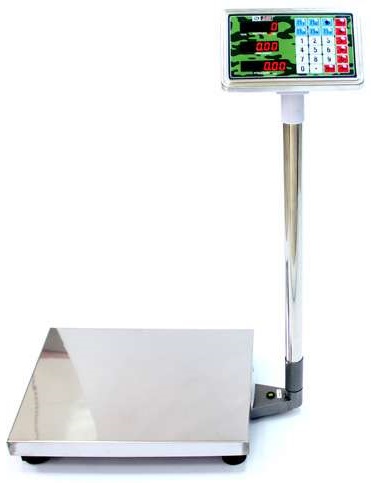 Электронные торговые напольные весы Мах=150кг, Min=400г, e=20/50г. Блок индикации из нержавеющей стали, ЖКИ (LCD). Количество разрядов индикации: масса - 5, цена - 5, стоимость - 6. платформа 400х500мм нерж. Функция Тара, принудительное обнуление, 6 программируемых клавиш быстрого набора цены, суммирование покупок. Питание от сети 220В, аккумулятора 4В/4Ач. Регулировка подсветки индикатора.