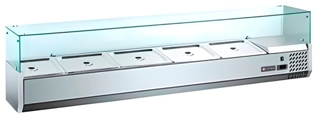 1400x335x435 мм, 230В, 0,11 кВт, 6хGN1/4, +2…+8 C, макс. глубина гастроемкостей 150 мм, гастроемкости в комплект не входят, статическое охлаждение
