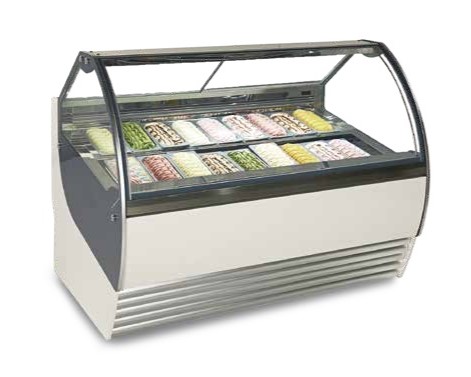 Витрина для мороженого CARPINI MILAN ML 12 с превосходной обозримостью продукта и значительным наклоном поверхности выкладки. Фронтальное и боковое остекление: стеклопакет, система антизапотевания, внутренняя LED подсветка, раздвижные дверцы со стороны продавца.