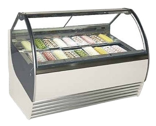 Витрина для мороженого CARPINI MILAN ML 18 с превосходной обозримостью продукта и значительным наклоном поверхности выкладки. Фронтальное и боковое остекление: стеклопакет, система антизапотевания, внутренняя LED подсветка, раздвижные дверцы со стороны продавца.