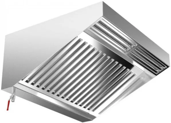Внизу вытяжки имеется герметичная ванна, куда стекает масло, жир, вода с фильтров. Ванна имеет сливное отверстие для санитарной очисти
